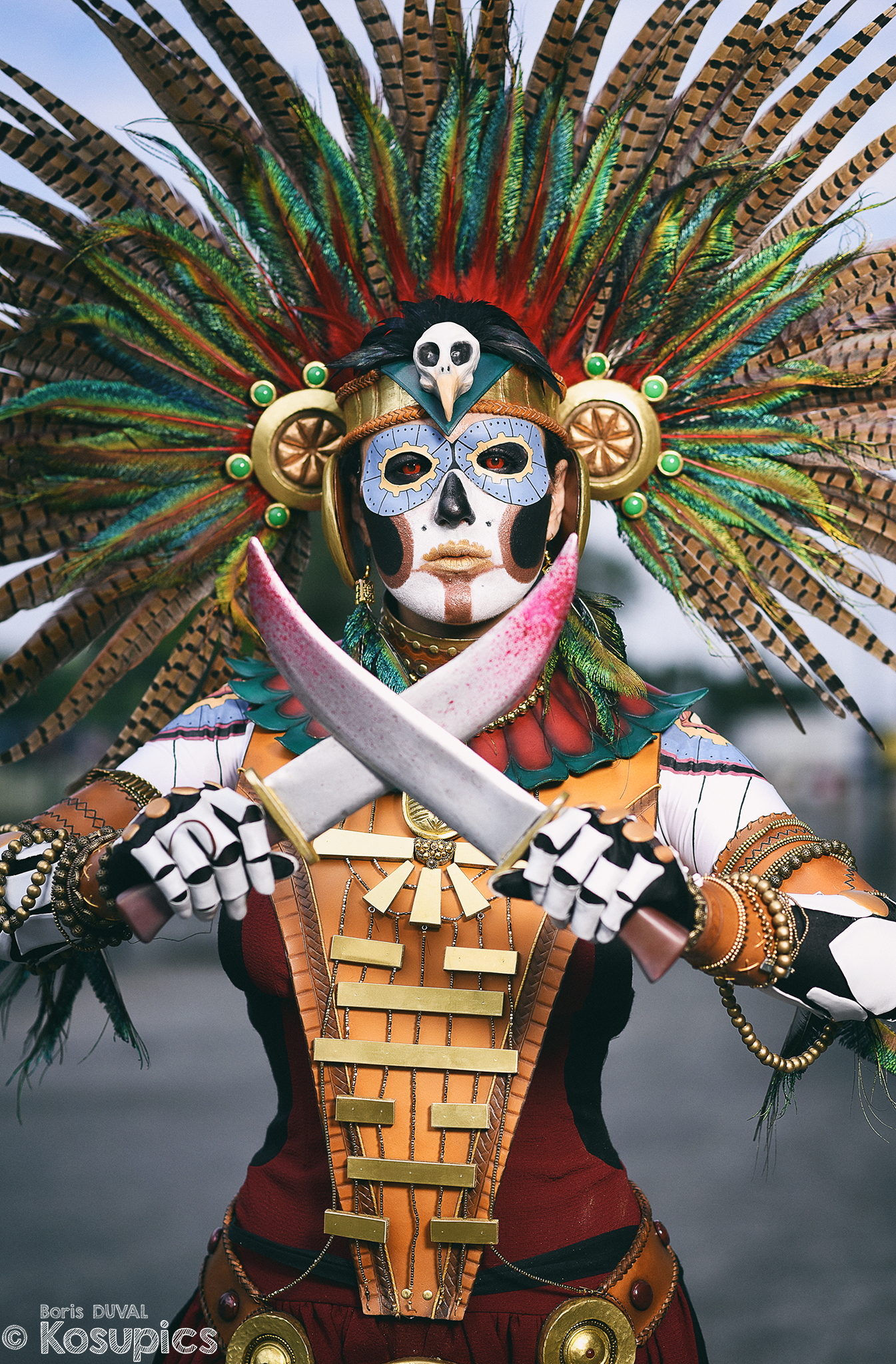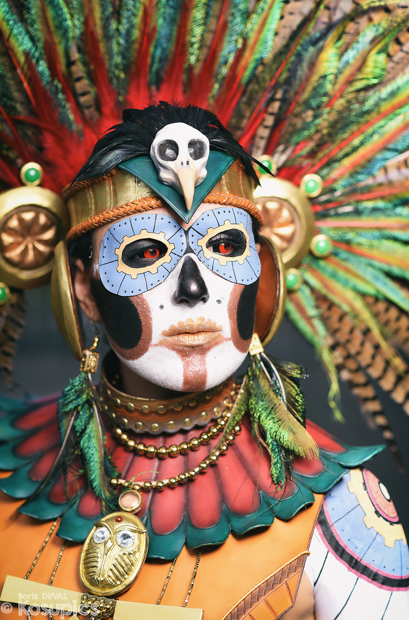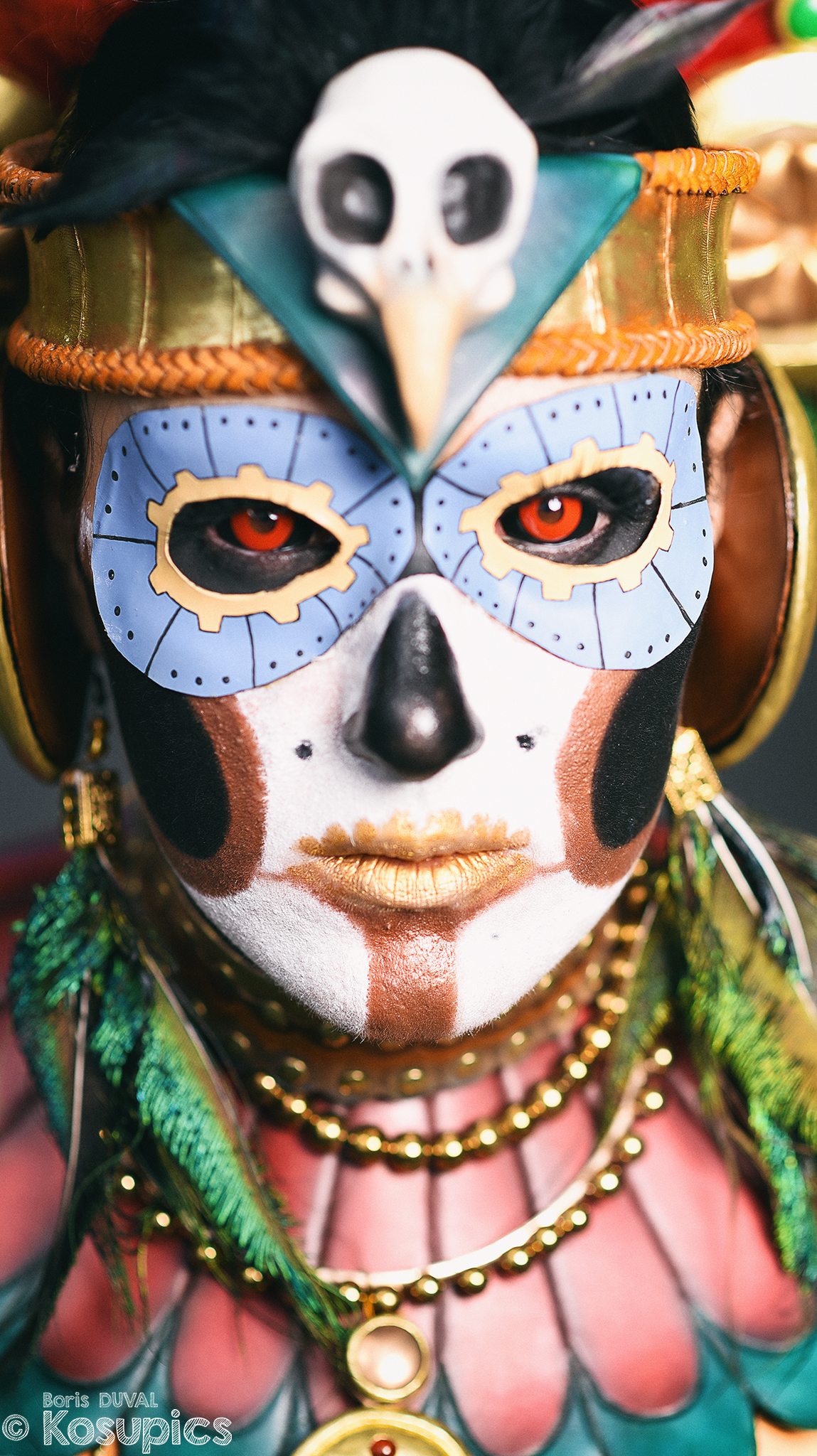 Ce cosplay  a été créée pour la sélection française de l’European Cosplay Gathering (aujourd’hui Extreme Cosplay Gathering). C’est le costume qui m’a le plus appris: travail du cuir, résine, silicone, bois, latex, métal, sculpture, plumasserie… Aucun autre cosplay ne m’a demandé d’apprendre autant de techniques d’un coup.